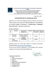Applications are invited for the temporary positions of Research Assistant and Field Investigator